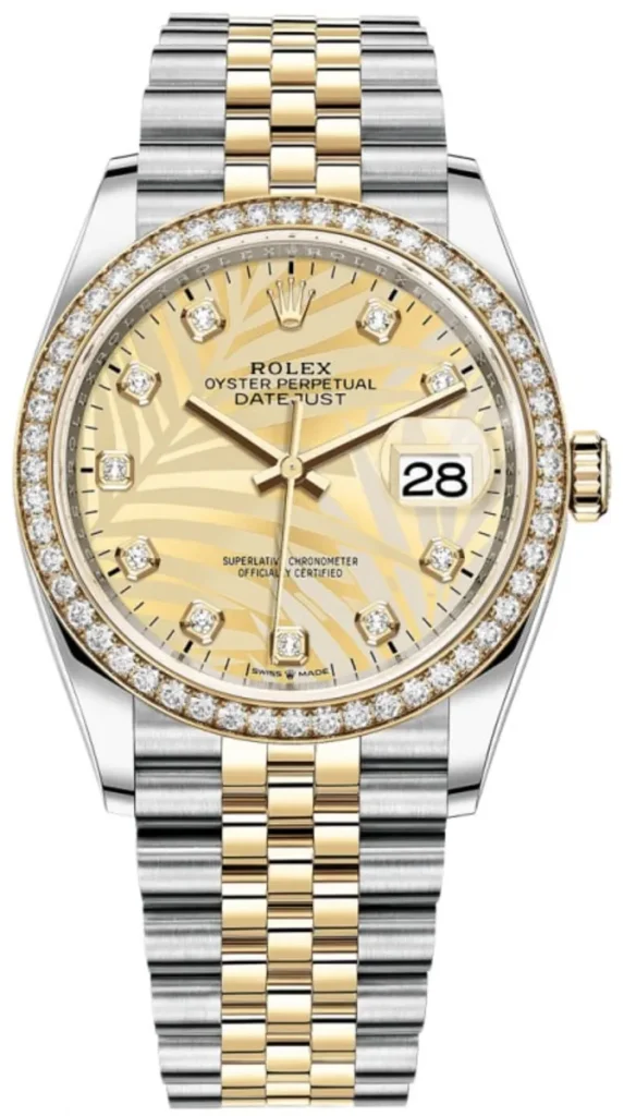 Rolex Datejust 36 Yellow Gold & Diamonds Golden Palm-Motif Diamond Dial Women’s Watch M126283RBR-0029