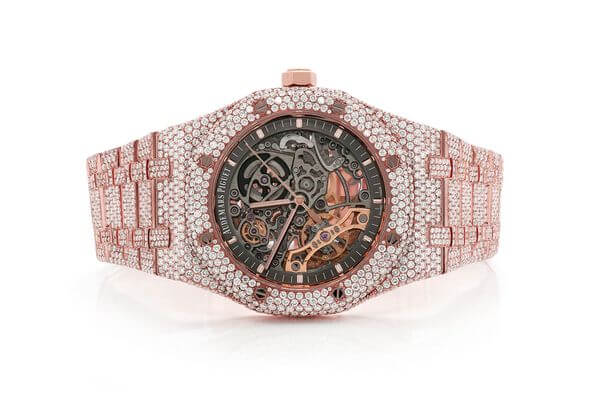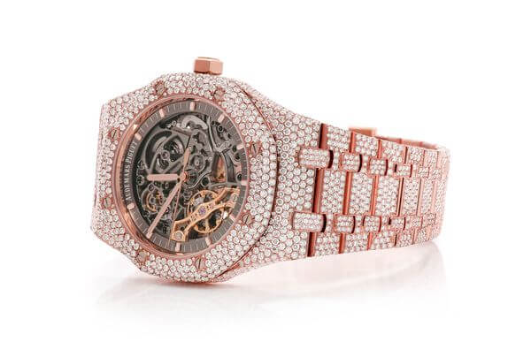 MOISSANITE AUDEMARS PIGUET SKELETON 41MM WATCH ROSE GOLD FULL ICED 24.00CT