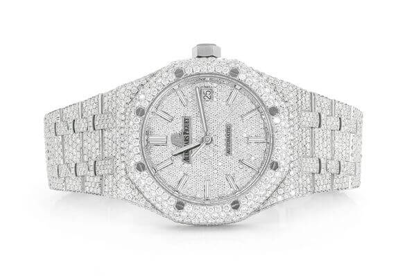 MOISSANITE AP WATCH | ROYAL OAK 41MM STAINLESS STEEL | FULL ICED OUT SILVER