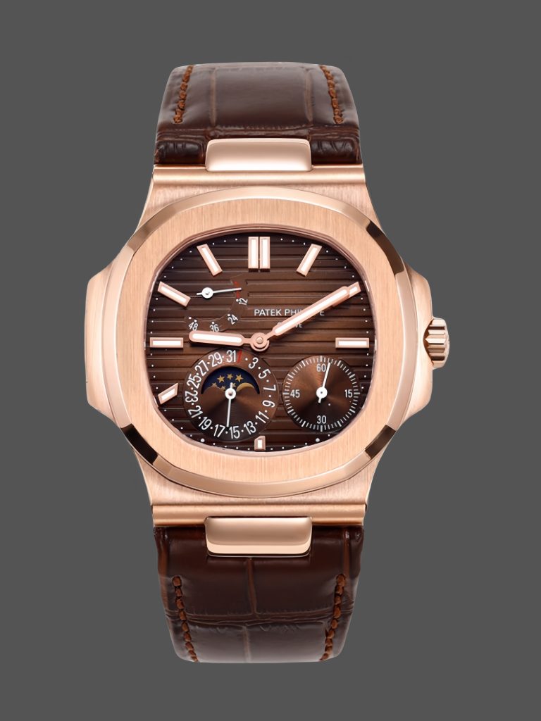 Patek Philippe Nautilus Moon Phases Rose & White Gold Slate Brown Dial 5712GR 001
