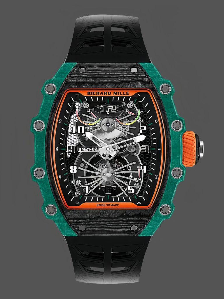 $1,599.00 – $3,399.00Price range: $1,599.00 through $3,399.00Richard Mille RM 21-02 Tourbillon Aerodyne Quarts TPT Carbon