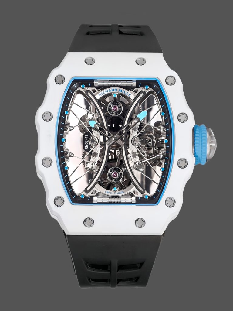 $239.00 – $849.00Price range: $239.00 through $849.00Richard Mille RM053-01 Pablo MacDonough Skeleton Dial Black Rubber Strap