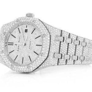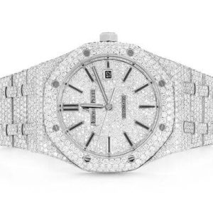 AUDEMARS PIGUET ICED OUT ROYAL OAK 41MM STAINLESS STEEL HEBREW DIAL SILVER VVS MOISSANITE WATCH