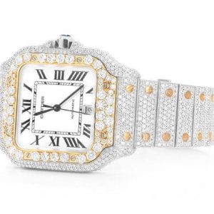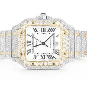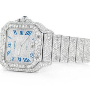 CARTIER WATCH BUST DOWN SANTOS DE 40MM STEEL FULL ICED VVS MOISSANITE BLUE ROMAN DIAL