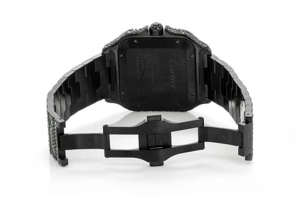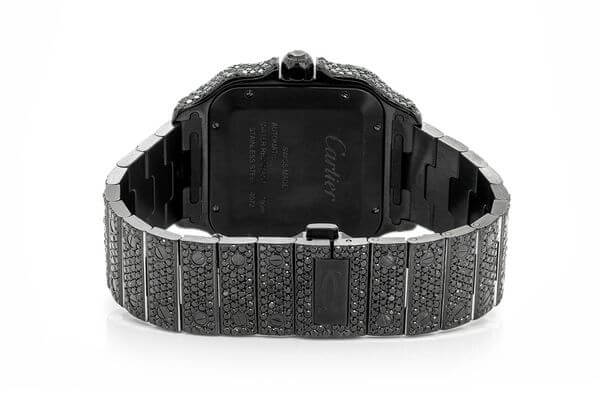 CARTIER SANTOS 100XL FULL ICED BLACK MOISSANITE DIAMONDS ROMAN DIAL 40MM WATCH
