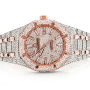 AUDEMARS PIGUET DIAMOND ROYAL OAK 41MM TWO TONE BAGUETTE FULL ICED VVS MOISSANITE WATCH