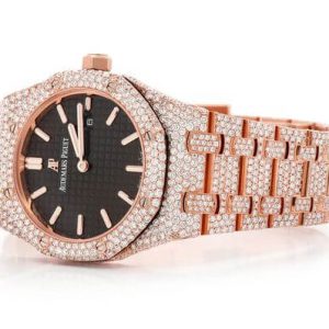 AP WATCH ICED OUT ROYAL OAK 41MM STEEL ROSE GOLD BLACK DIAL FULL MOISSANITE