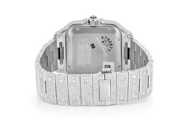CARTIER WATCH DIAMOND FULL ICED MOISSANITE 40MM STEEL WHITE ROMAN DIAL