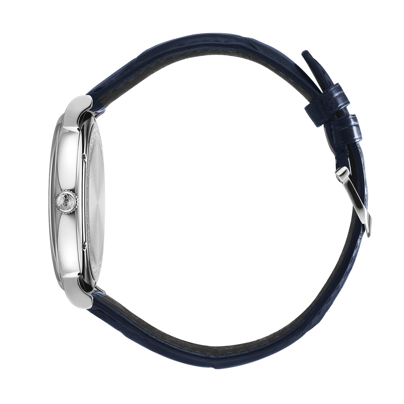 Highlights: The Portofino Automatic 40 (IW356527) displays all the signature Portofino design cues such as a classic round case with straight lugs, appliquéd indices and Roman numerals, and slender feuille hands. This new version in a 40mm stainless steel case enchants with a silver-plated dial and blue hands and appliqués, which harmonize perfectly with the blue strap made of fine alligator leather. This timelessly elegant automatic watch also features a date display at 3 o’clock.