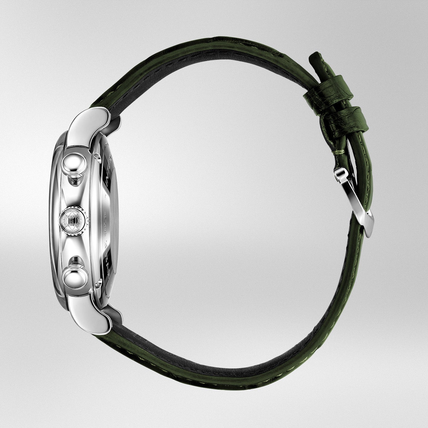Highlights: With the Portofino Chronograph 39, IWC is introducing a chronograph in a slightly more compact case size of 39mm. This model features a stainless steel case, a green dial and rhodium-plated hands and appliqués. The two totalizers at 6 and 12 o’clock ensure a balanced look on the dial. The high-quality strap made of green alligator leather provides a high level of wearing comfort and a refined appearance.