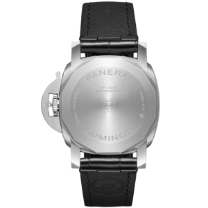 Black with luminous Arabic numerals and hour markers. Date at 3 o’clock and small seconds at 9 o’clock