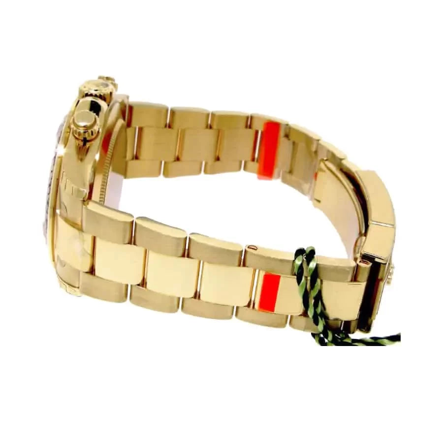 This Rolex Cosmograph Daytona Oyster Yellow Gold Green Dial 116508-0013 Replica is a high quality watch. It features a 904L stainless steel case with a yellow gold color and a sapphire crystal. The movement is an automatic caliber 4130 with a power reserve of 60 hours and a precision of (-3/+3 sec/day) within COSC certification limits. The bracelet is also made of 904L stainless steel with an adjustable link and a fold clasp in yellow gold.