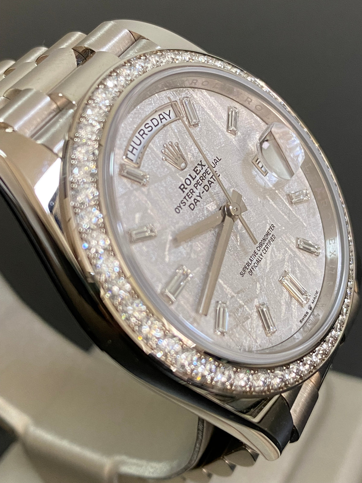Rolex Day-Date 40 Platinum Meteorite Diamond Dial Diamond Bezel Men’s Watch M228396TBR-0027