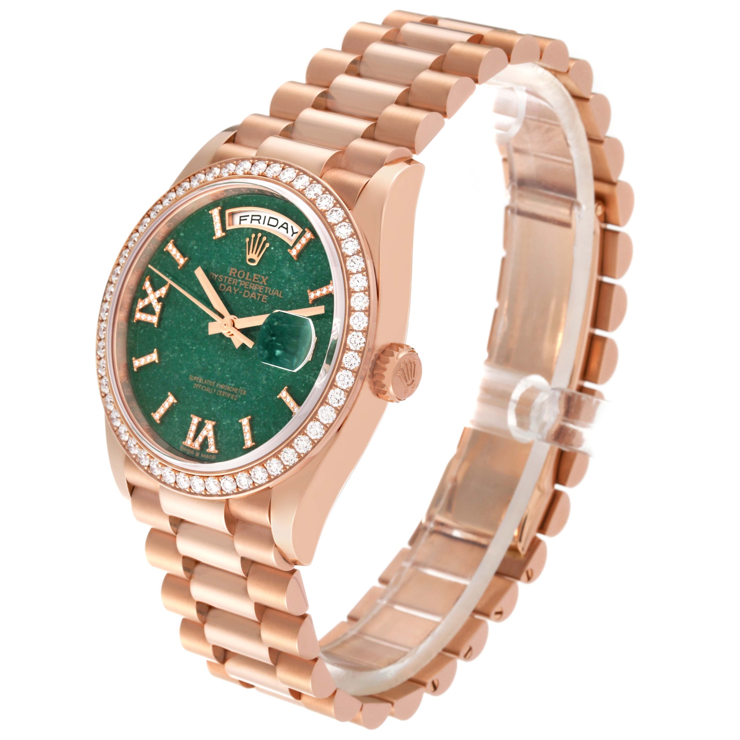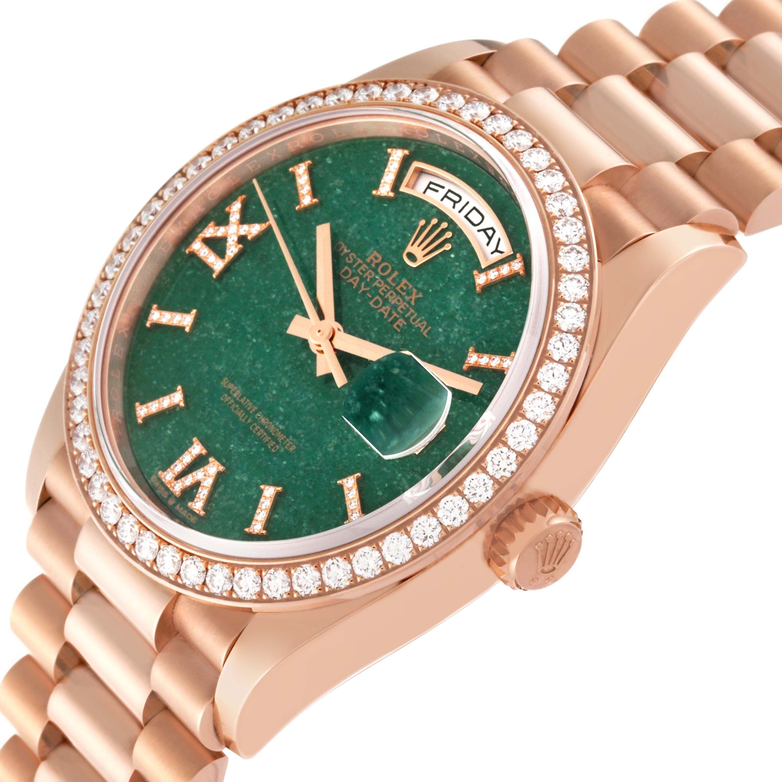 Rolex Day-Date Rose Gold Green Aventurine Diamond-Set Roman Dial Diamond Bezel Women’s Watch M128345RBR-0068