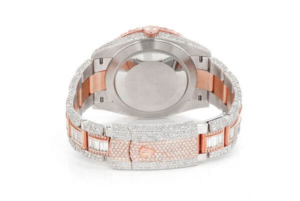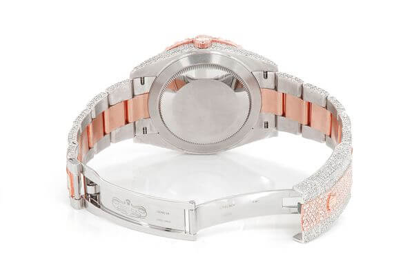 This Rolex Diamond watch Datejust is made of Two-Tone-Rose and has a 41mm with 22.10ctw of Moissanite. this watch inside and out to Rolex quality standards. This watch comes with an Rolex box.