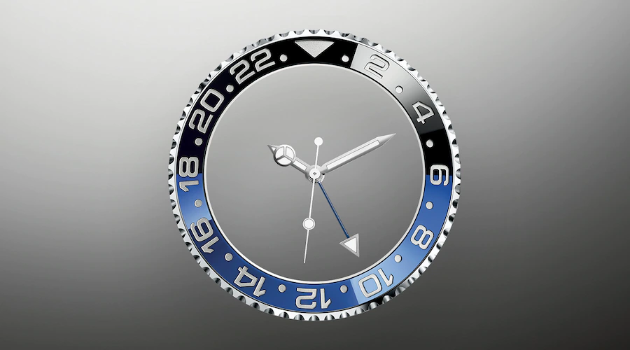 In addition to conventional hour, minute and seconds hands, the GMT-Master II features an arrow-tipped hand, which circles the dial once every 24 hours, as well as a bidirectional rotatable 24-hour graduated bezel.