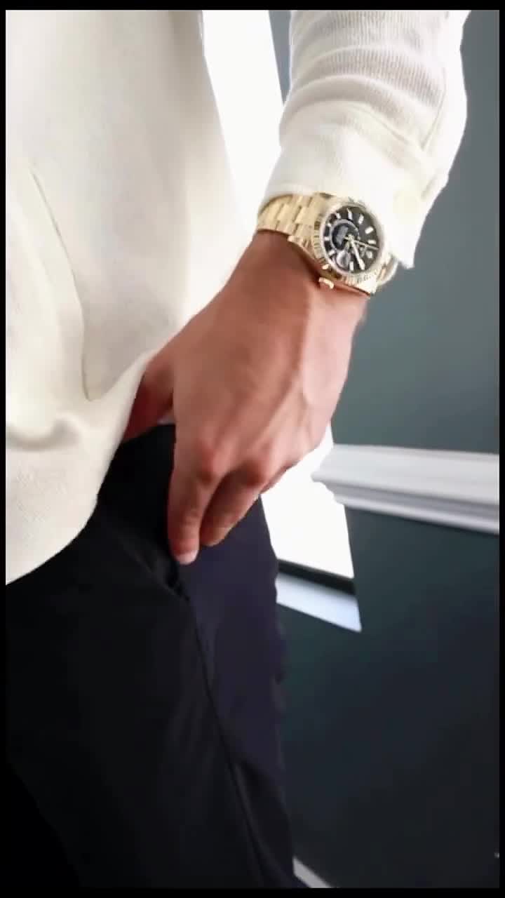 Rolex Sky-DwellerYellow Gold Sky-Dweller Jubilee 336938-0005 Fluted RingCommand Bezel Black Index Dial Watch 2024