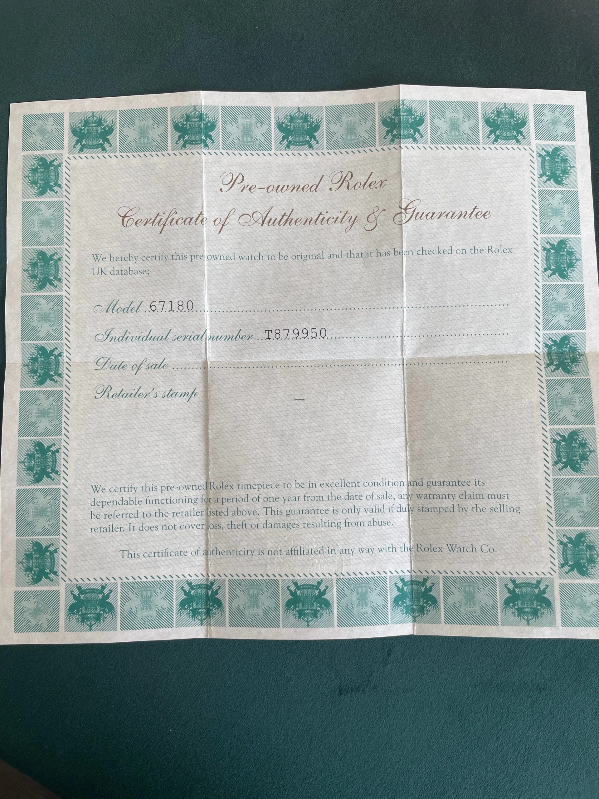 Presented complete with its Rolex box, booklet, both swing tags, bezel protector, WOS card, and UK stamped Rolex international warranty dated June 2019.