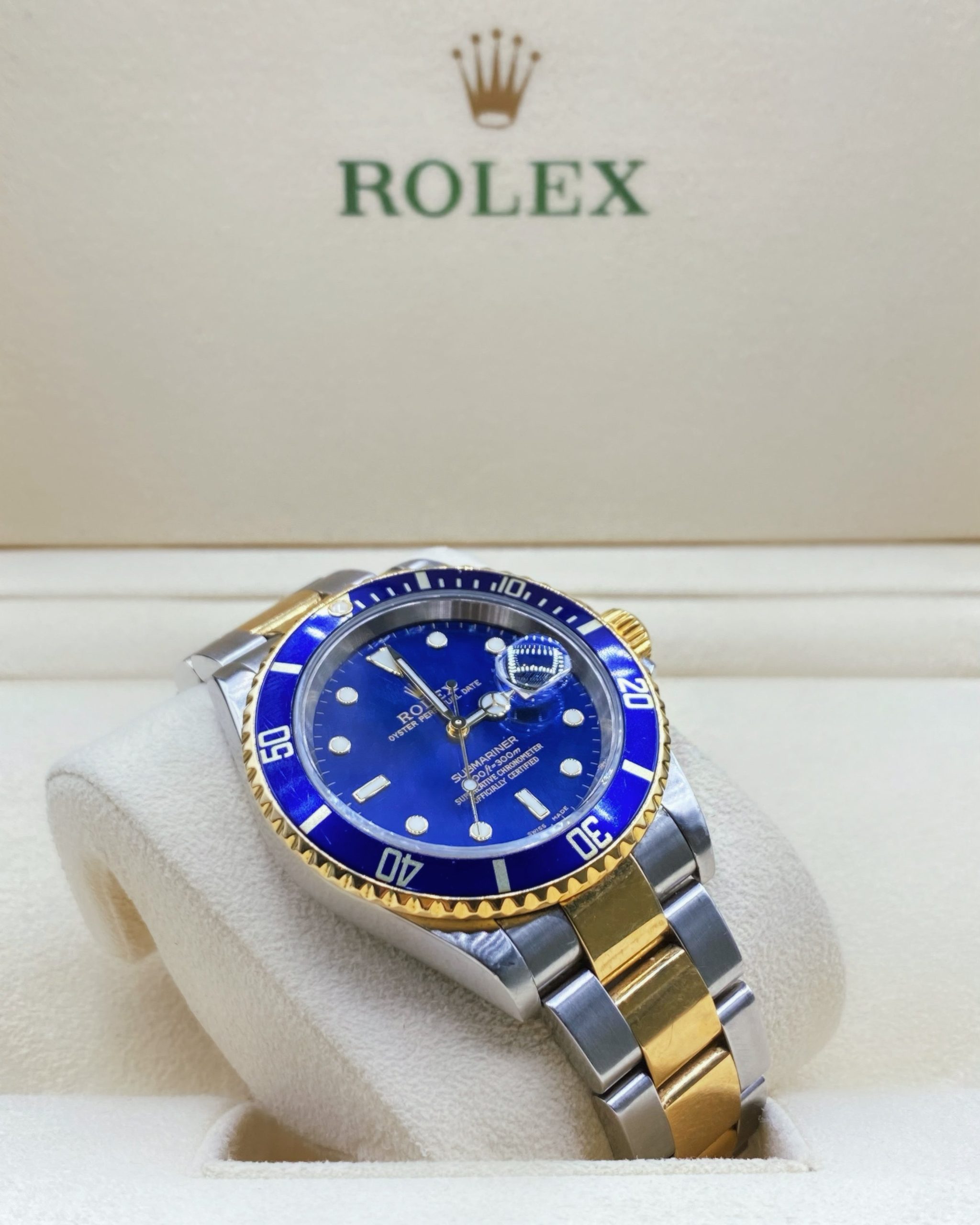 So we’re delighted to offer this completely new 18ct gold & steel Submariner Date ref. 116613LB, with full Rolex factory protective stickers. UK retailed in June 2019 & under Rolex international warranty to June 2024.