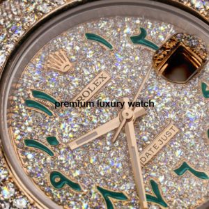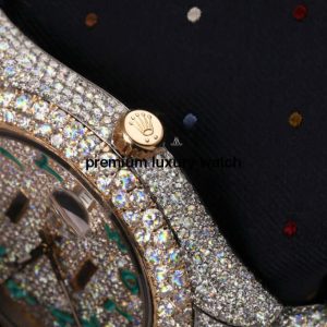 Rolex Datejust 41MM Turquoise Arabic Script Dial Stainless Steel and Moissanite Iced Out Watch