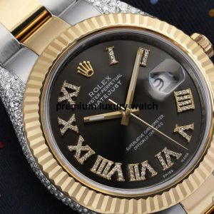 Rolex Datejust Iced out 41MM Stainless Steel and Yellow Gold Custom VVS Moissanite Grey Roman Dial