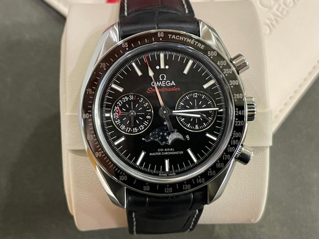 The Speedmaster/Omega Speedmaster is one of Omega’s iconic timepieces and has participated in six moon landings. This new, further evolved moon phase model features realistic moon features.